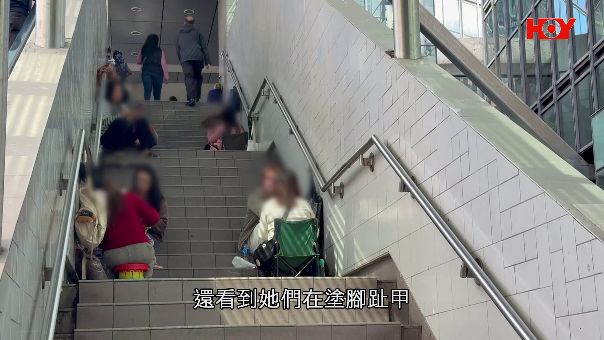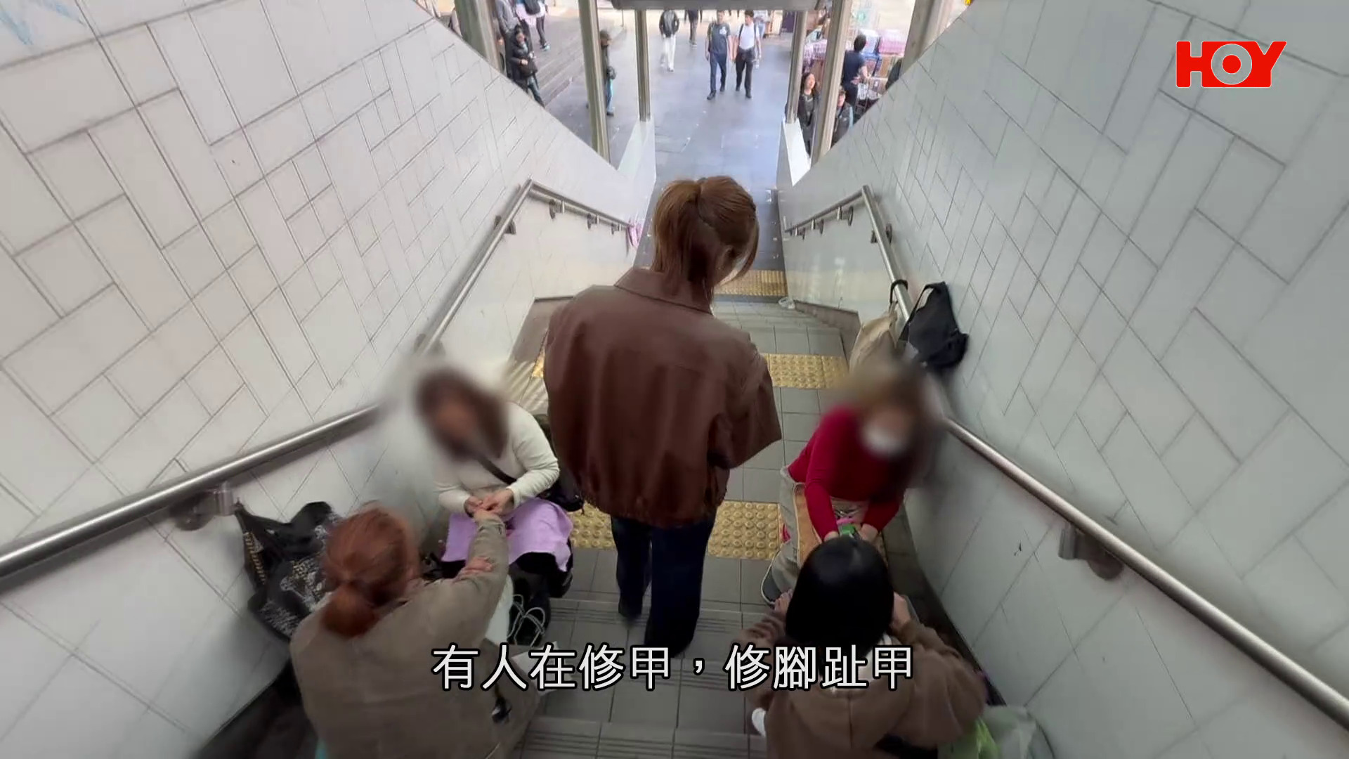 天橋樓梯成「街邊足療店」 批腳皮、剪甲聲不絕
