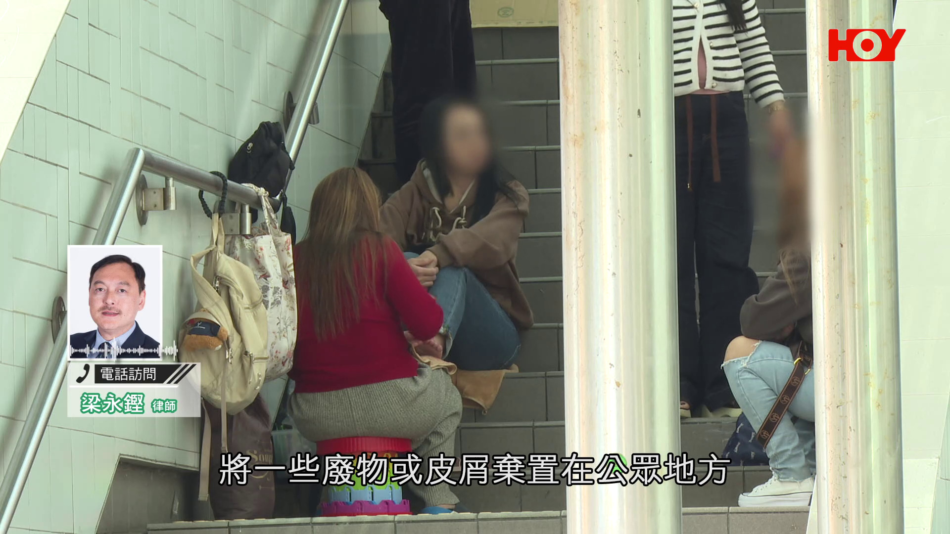 《一線搜查》攝製隊平日中午到場視察,發現樓梯左右扶手掛滿袋子,梯級間放置小椅子,有人坐梯級休息、食飯,甚至有人在修甲、塗腳趾甲。繁忙時段,路人只能從中間狹窄通道通過,容易造成堵塞。