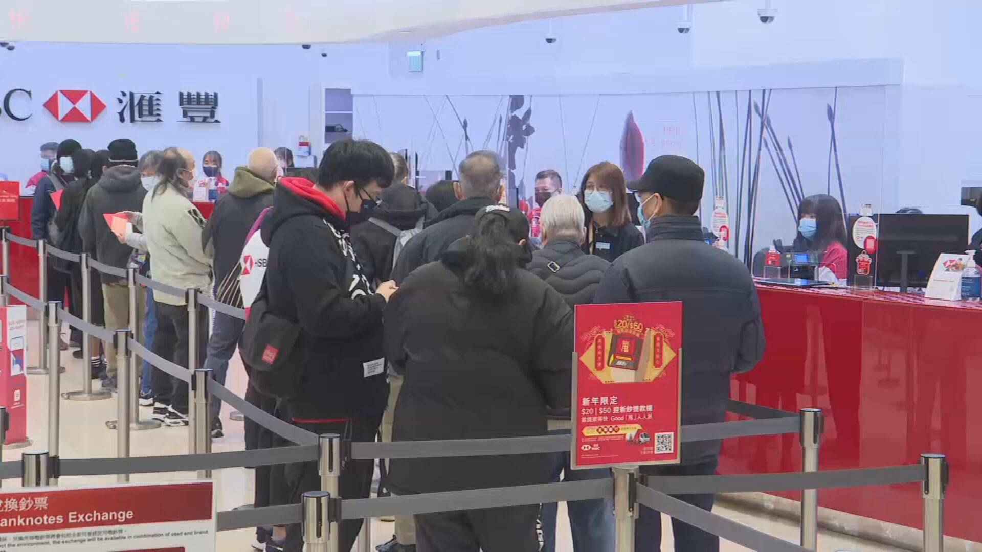 - 全線分行及理財中心將在2月3日至5日延長服務時間,提早於早上8時營業,額外營業時段專門提供換鈔服務,分行並設有兌換新鈔專窗及派籌登記服務。
