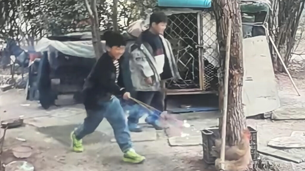 事發於連雲港市東海縣中央花園小區,內地社交平台周日(1日)流傳閉路電視片段,兩名據指就讀於東海縣牛山小學的男童疑因貪玩,手持點燃的煙花在屋苑公共地方的一個狗屋旁徘徊,導致籠內易燃物被點燃。